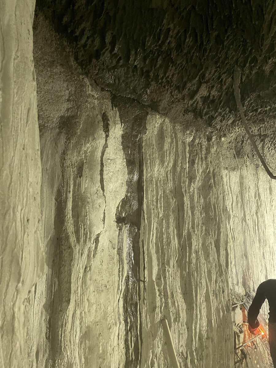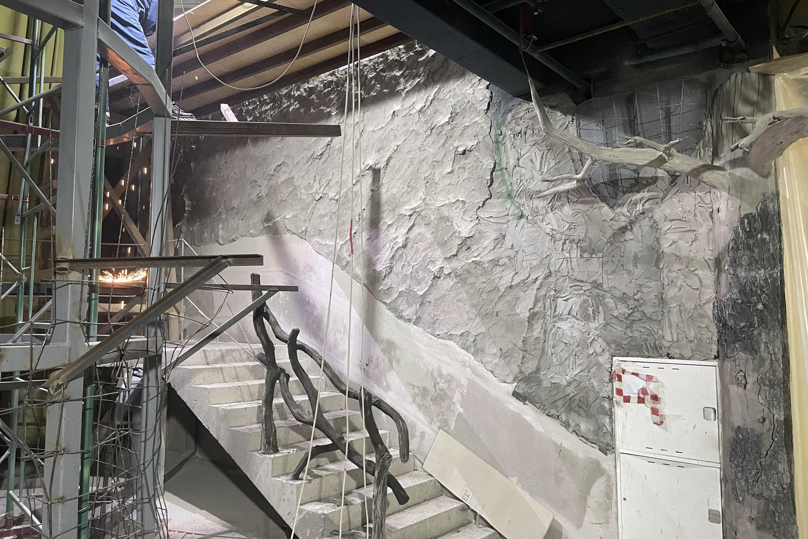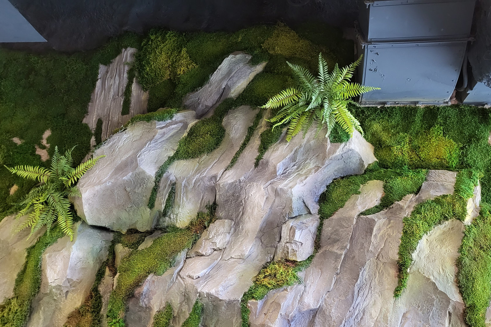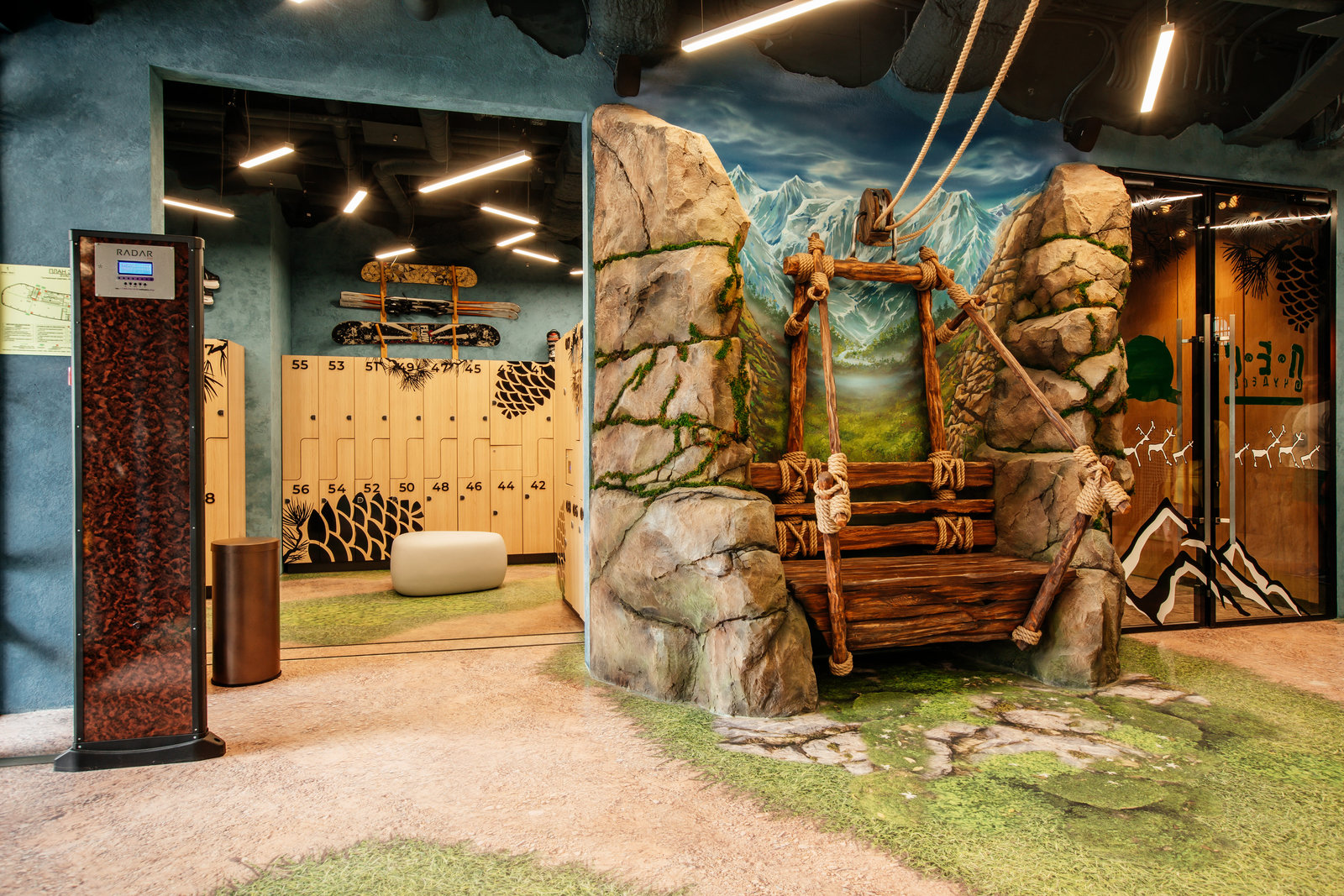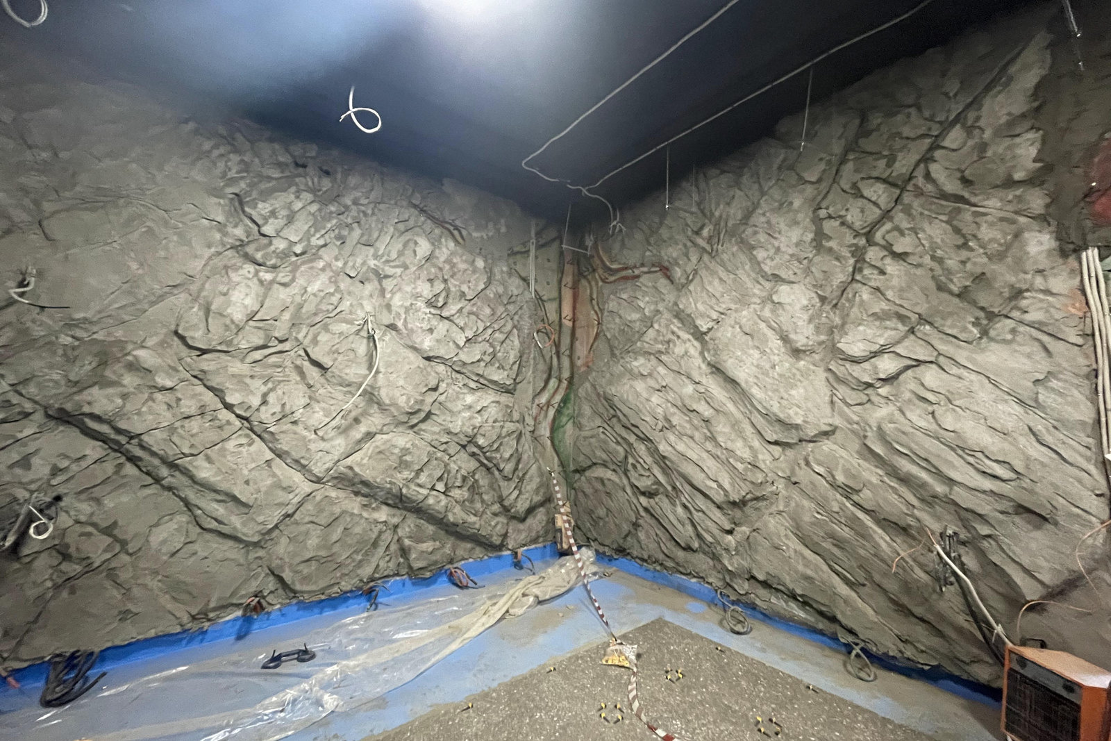 Когда смотришь на стену, превращенную в каменный уступ, трудно поверить, что она сделана из бетона. В этом и заключается сила материала: он не просто повторяет природные формы, а органично вписывается в интерьер. Скала выглядит естественно, будто ее заложили при строительстве, а не создали позже.