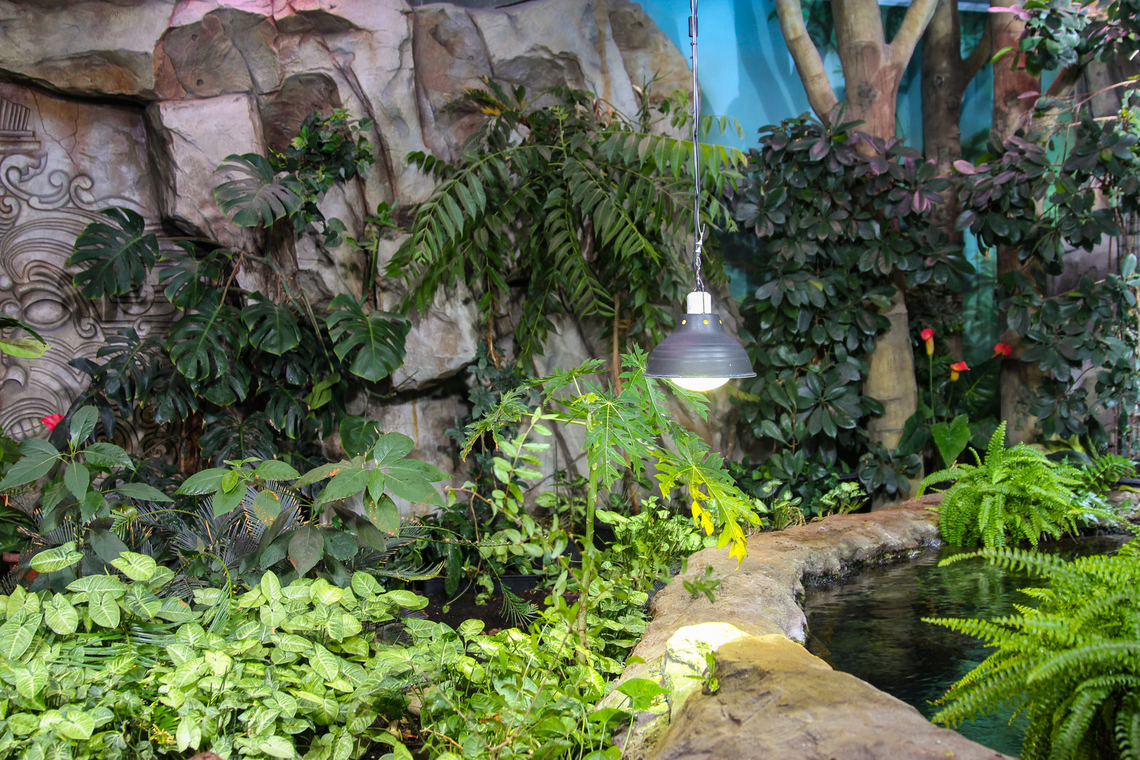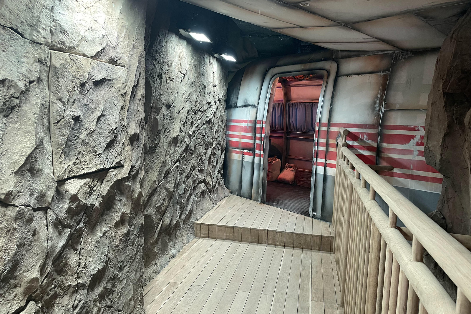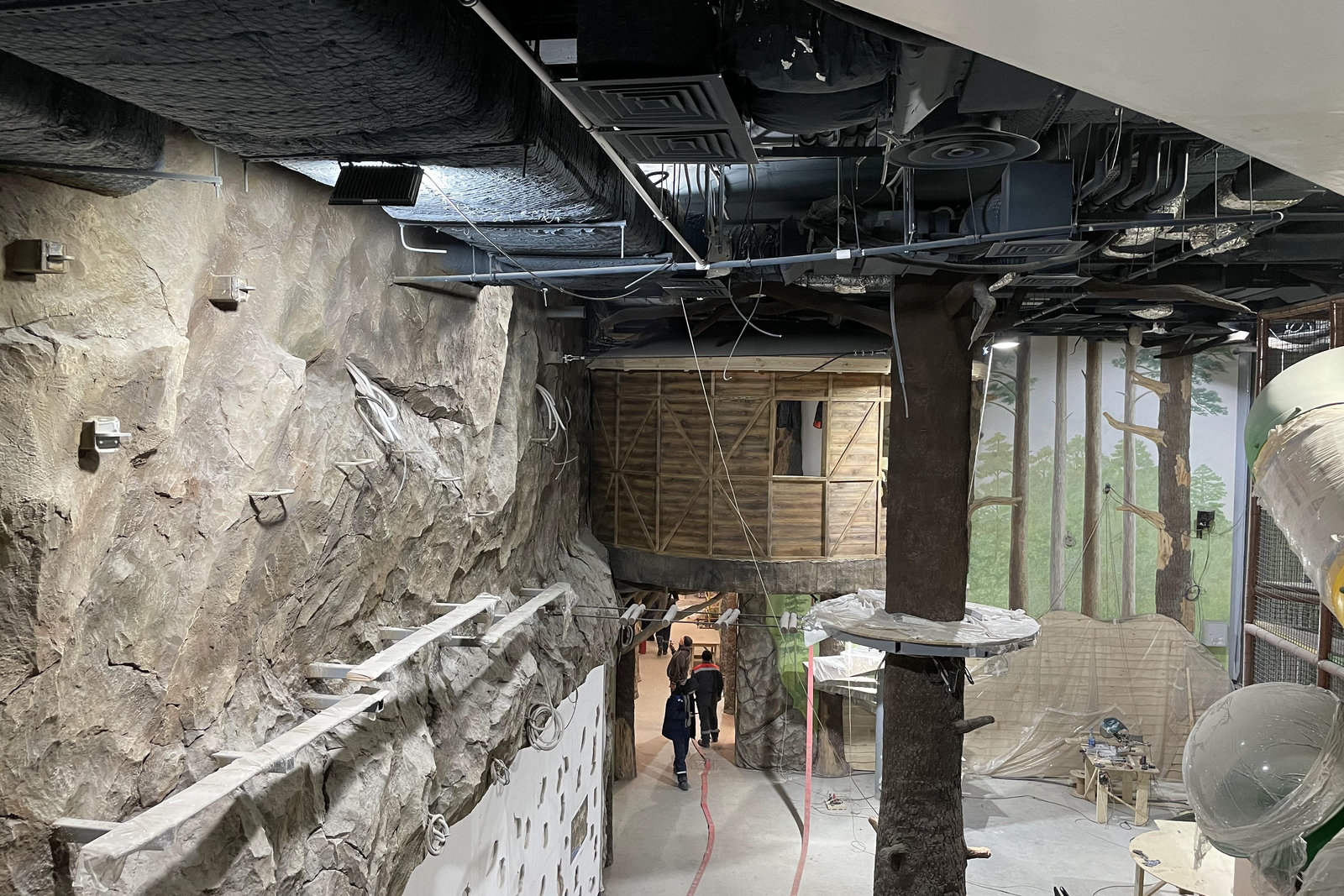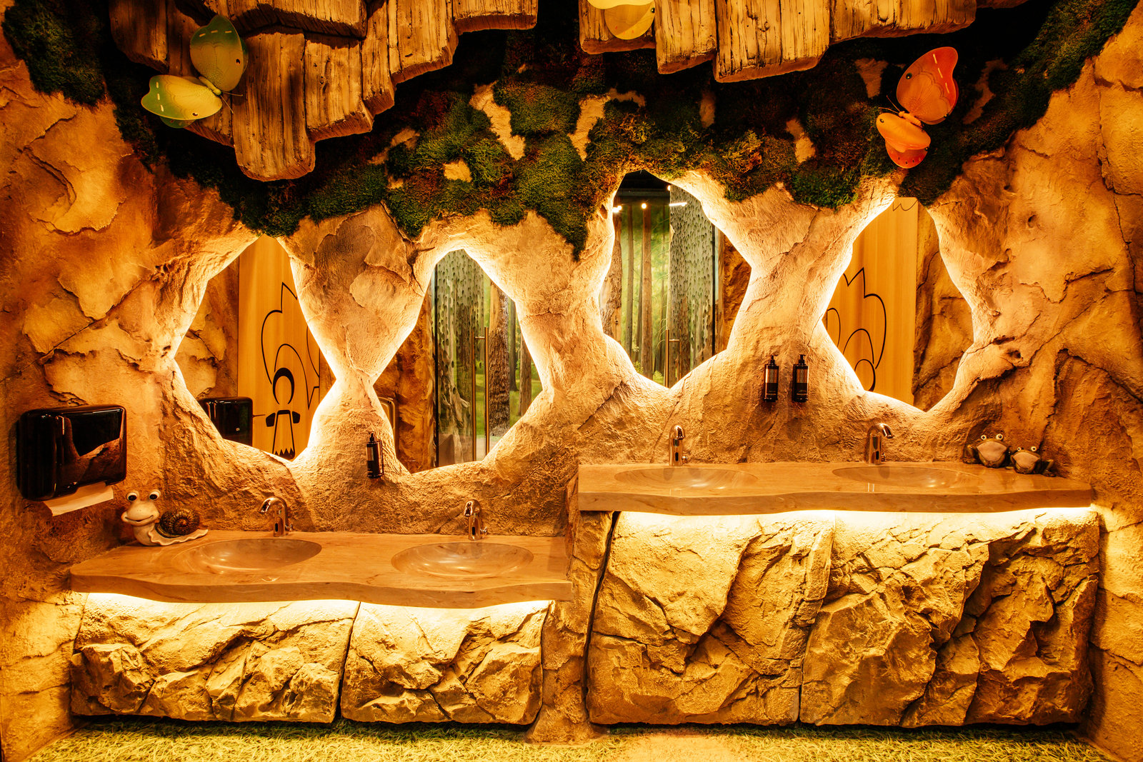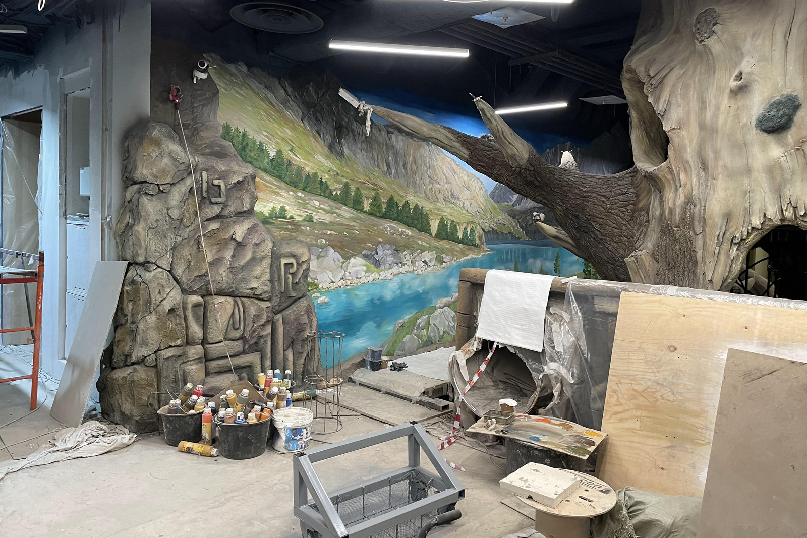 Когда смотришь на стену, превращенную в каменный уступ, трудно поверить, что она сделана из бетона. В этом и заключается сила материала: он не просто повторяет природные формы, а органично вписывается в интерьер. Скала выглядит естественно, будто ее заложили при строительстве, а не создали позже.