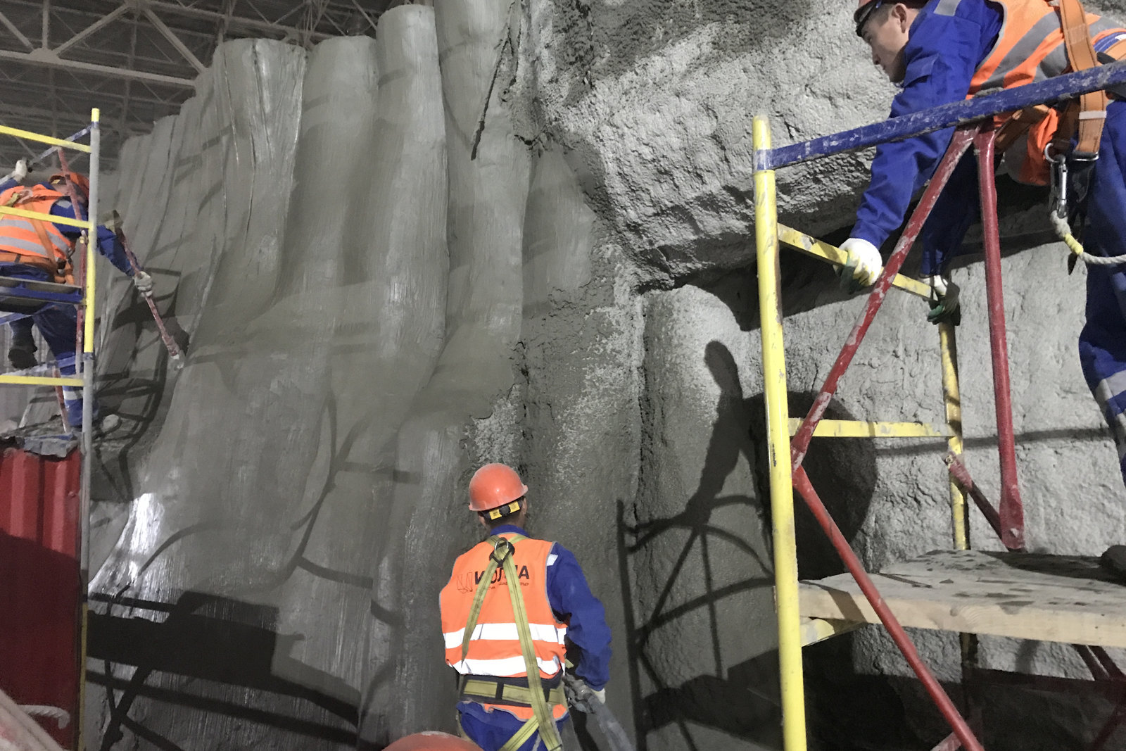 Следующий этап — лепка и создание фактуры. Используется архитектурный или скульптурный бетон, который позволяет работать с мелкими деталями. Мастера придают поверхности форму каменных выступов, трещин и сколов. Для этого применяют резцы, петли, мастихины и щетки разной жесткости. Важно уловить момент, когда материал уже не липнет к инструменту, но еще поддается коррекции. Именно тогда рельеф получается максимально реалистичным.