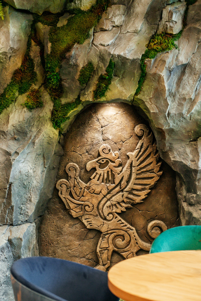 В последние годы в интерьерах все чаще встречаются скальные мотивы. Стены, оформленные под природный камень, выглядят необычно и придают помещению характер. Такой прием используют в квартирах, ресторанах, гостиницах и тематических заведениях. Он помогает выделить зону и подчеркнуть интересный визуальный акцент. Главный материал, с которым работают специалисты для создания таких композиций, — арт-бетон. Его еще называют архитектурным или скульптурным бетоном. Он позволяет передать сложный рельеф скальных пород, не утяжеляя конструкции и не ограничивая фантазию мастера.