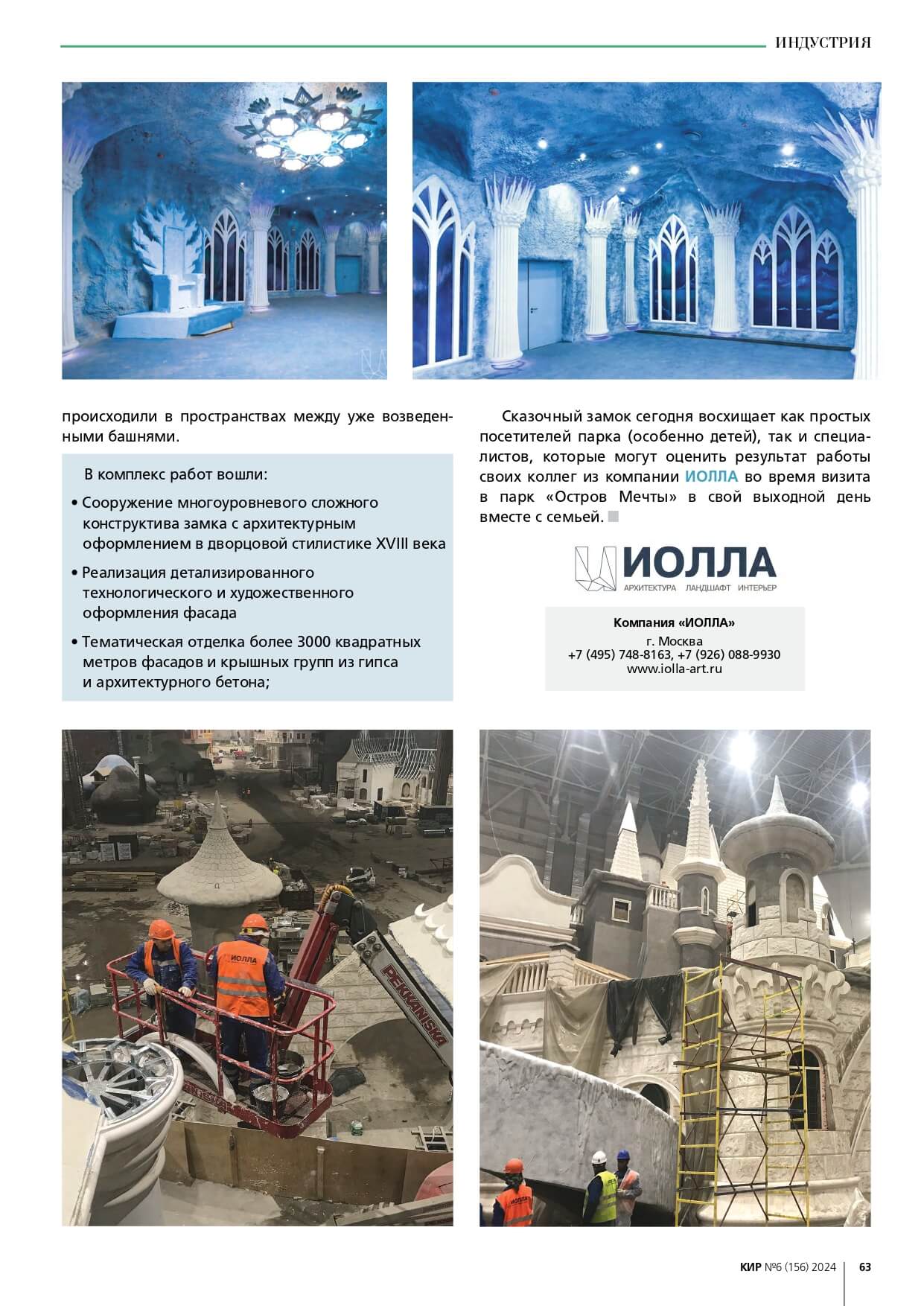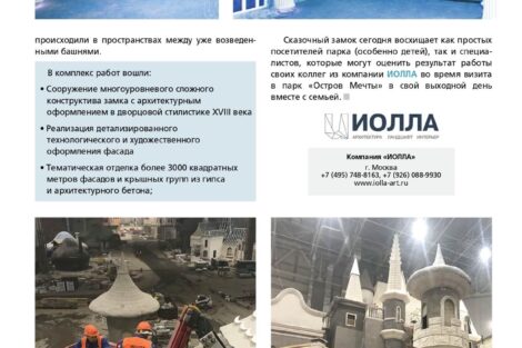 Архитектурно-строительная компания «Иолла» сообщает о публикации в авторитетном «Каталоге индустрии развлечений» («КИР») материала, посвященного завершенному проекту «Замок Снежной Королевы». Журнал отметил качество работ, подход к созданию многофункционального общественного пространства.