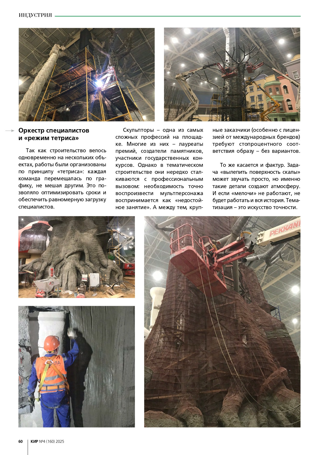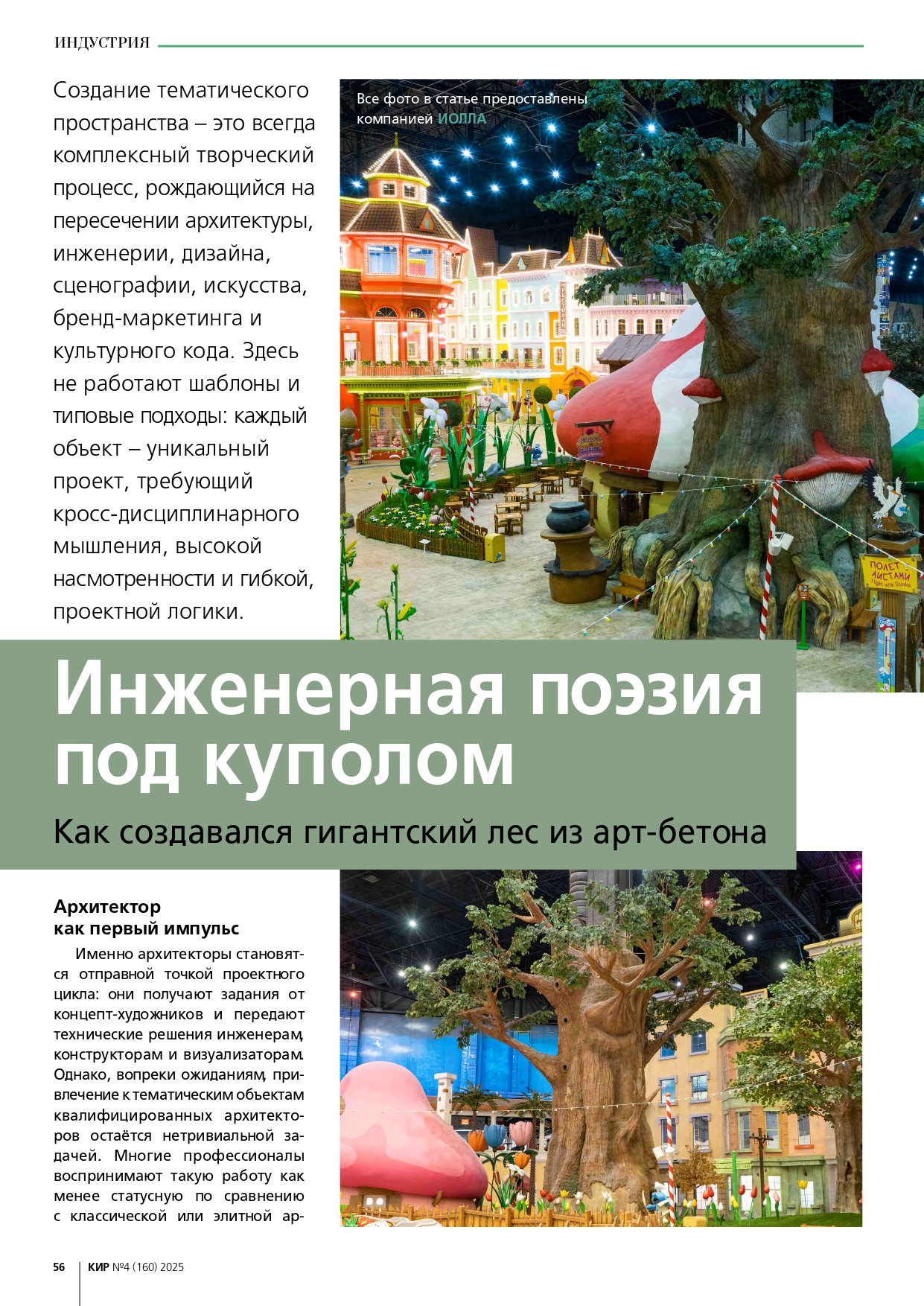 Публикация в отраслевом журнале подчеркивает не только техническую сложность проекта, но и художественную выразительность работы «Иоллы», которая создает прочную, долговечную и эстетически безупречную среду для тематического парка.