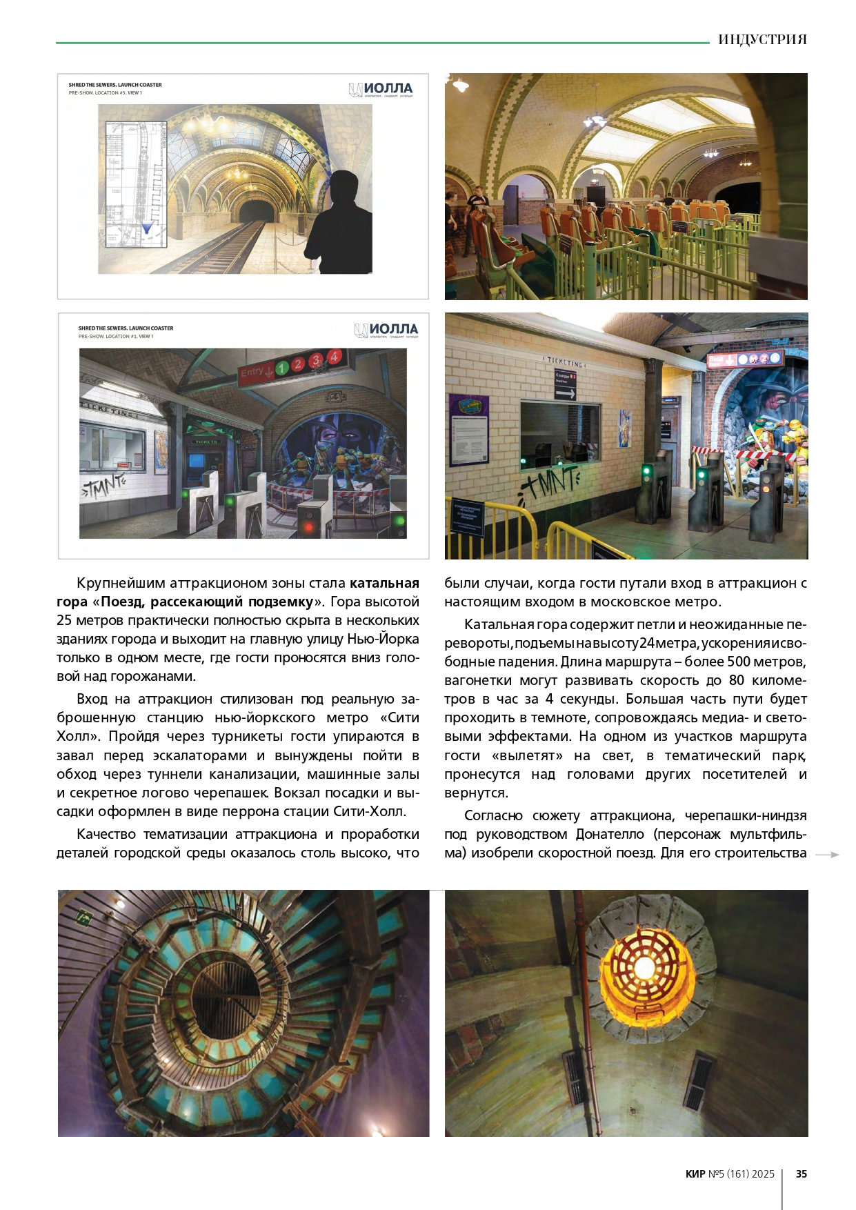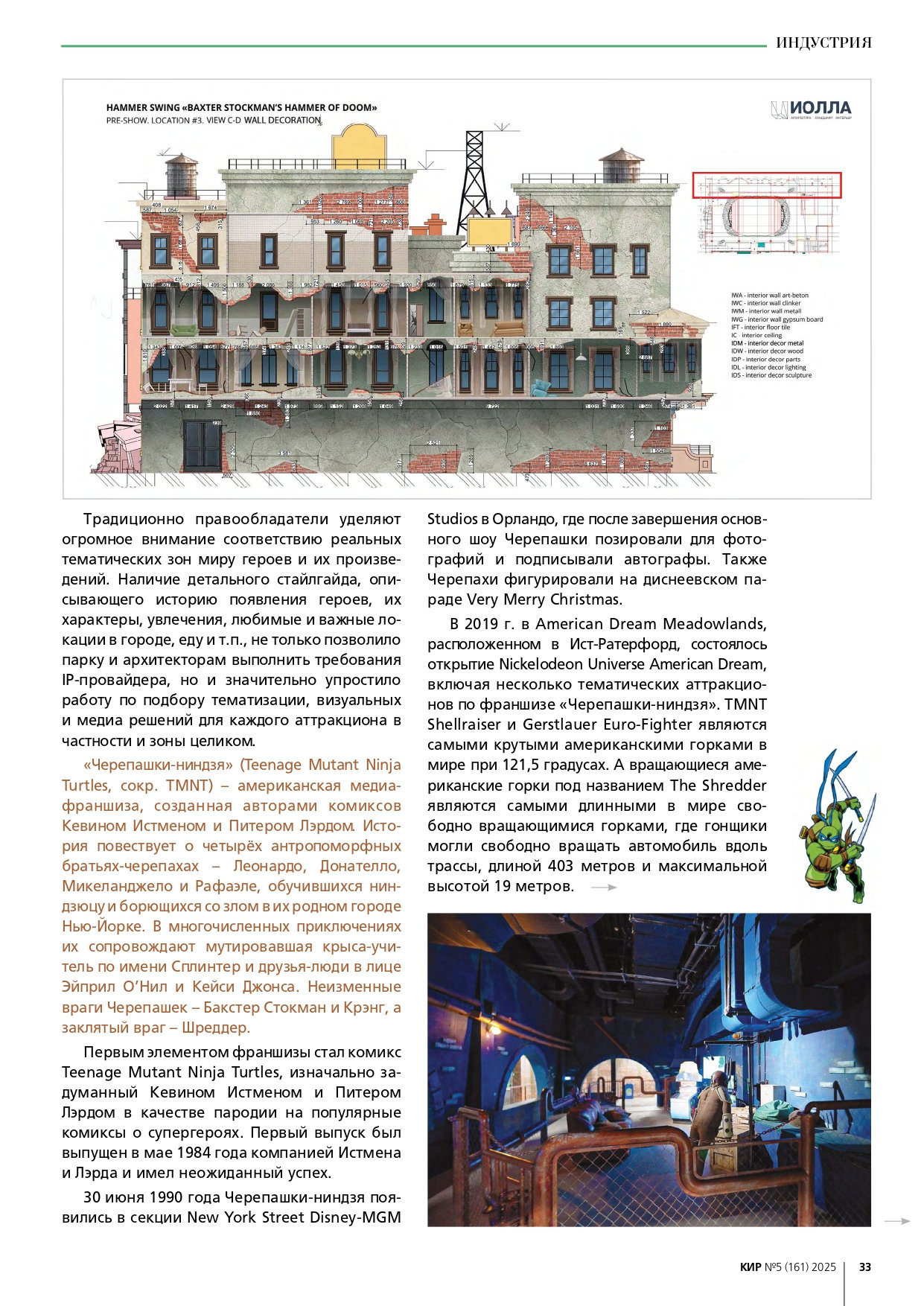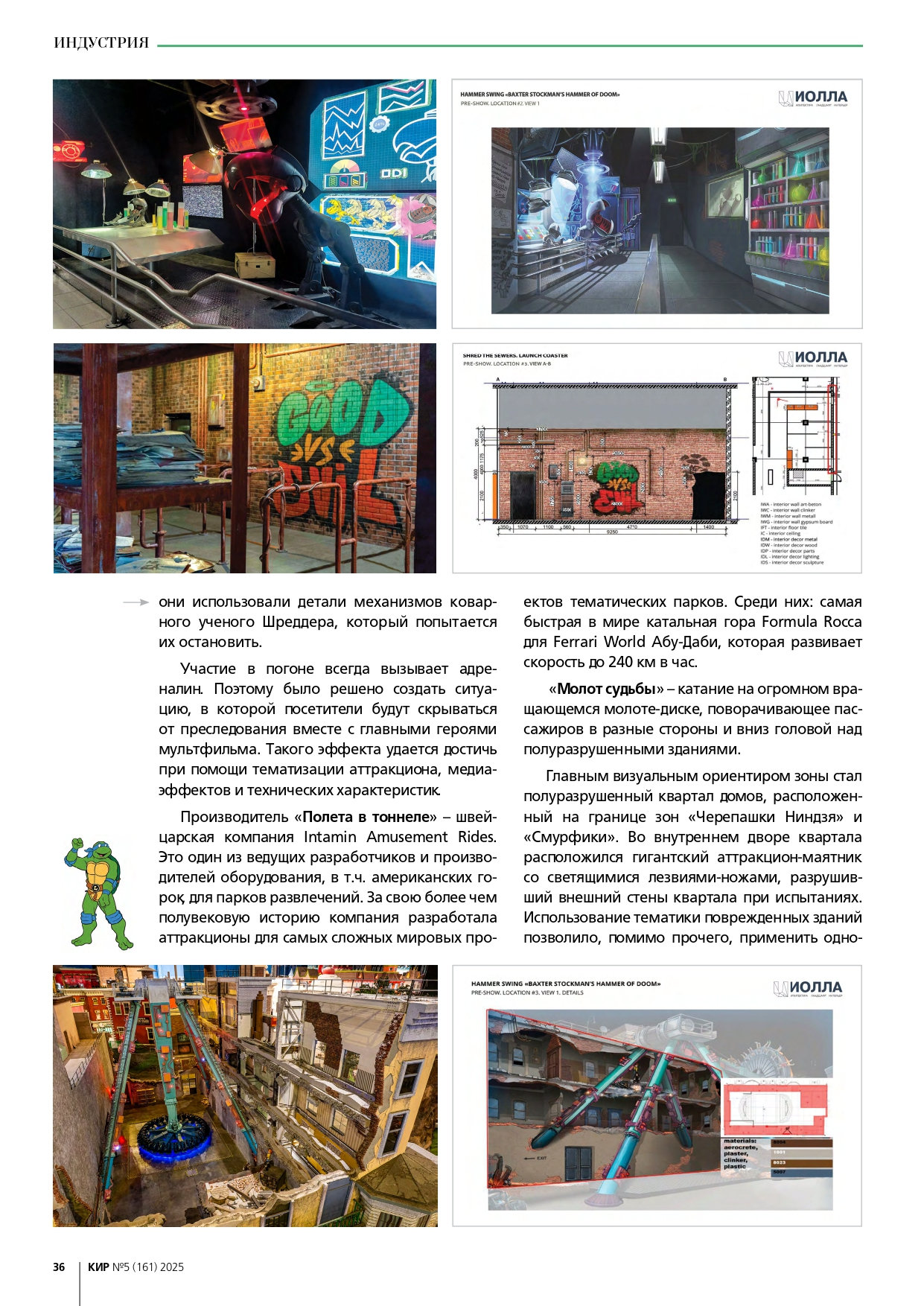 Команда разработчиков парка развлечений «Остров мечты» сообщает о публикации в авторитетном «Каталоге индустрии развлечений» («КИР») материала, посвященного концепции и технической реализации нового аттракциона «Черепашки-ниндзя». Журнал отметил комплексный подход к созданию динамичного семейного развлечения и высочайший уровень детализации.