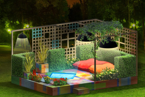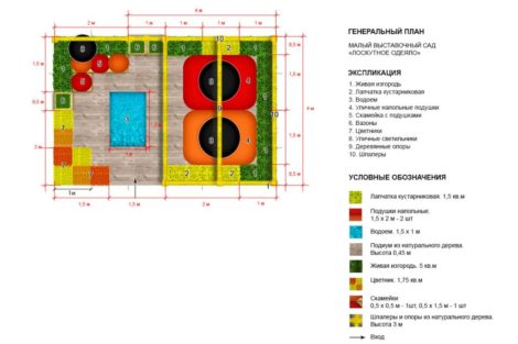 Разноцветный подиум сада, расписанный словно лоскутное одеяло, приглашает вас к непринужденному расслабляющему отдыху на больших, уютных подушках в тени высоких зеленых изгородей, скрывающих вас от серого и суетливого, шумного города. Небольшая зона отдыха напротив, в окружении ярких цветов и ароматных трав, около сухого водоема, располагает к душевным и романтичным беседам.