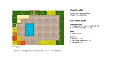 Проект малого выставочного сада (размер модуля 6х4м) разработан для Открытого международного конкурса городского ландшафтного дизайна «Цветочный джем 2018″. Сад «Лоскутное одеяло» попал в список финалистов конкурса и был рекомендован Экспертным советом для дальнейшей реализации в рамках фестиваля. Нашими специалистами было подготовлено проектное решение по самому саду и архитектурное решение по конструкции модуля. Оригинальный экземпляр реализован нами во дворе Лингвистической гимназии по адресу: Москва, Новинский б-р, д.3. Тираж сада — 150 экземпляров. Тиражируемые экземпляры реализованы сторонними компаниями по заказу Правительства Москвы, в рамках фестиваля «Цветочный джем».