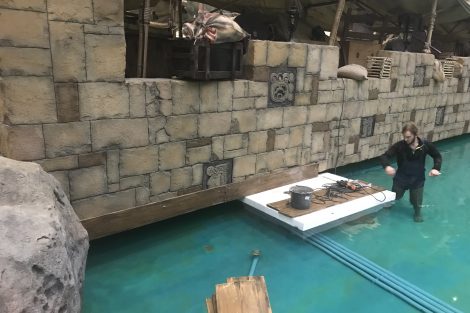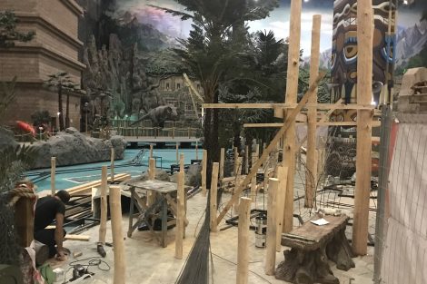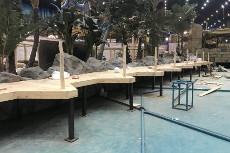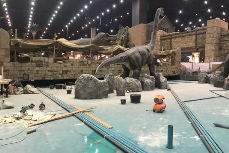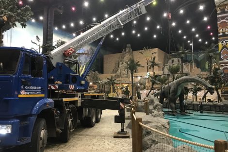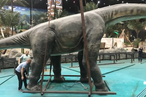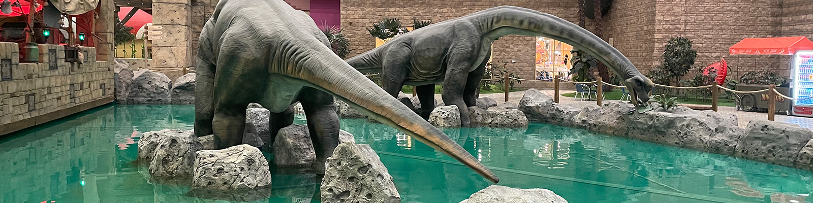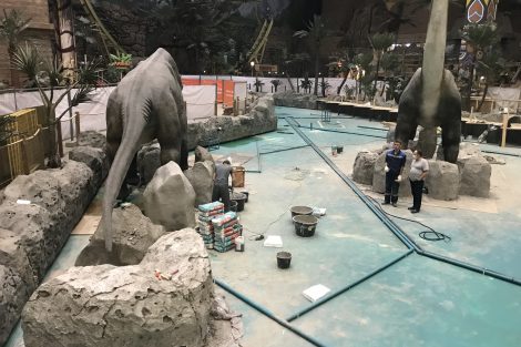 Передвижения по озеру было рассчитано таким образом, чтобы посетителям оставалось достаточно пространства для свободного маневрирования, при этом купировался контакт с аниматрониками, из-за которого с одной стороны возникала опасность травмирования движущимися хвостами. С другой стороны, необходимо предусмотреть возможность вандализма в отношении самих динозавров, покрытие которых выполнено из мягких материалов. Обе проблемы были решены путем изготовления и расстановки в специально определенных местах огромных валунов из артбетона и передвижением аниматроников в правильные позиции с помощью подъемных кранов.