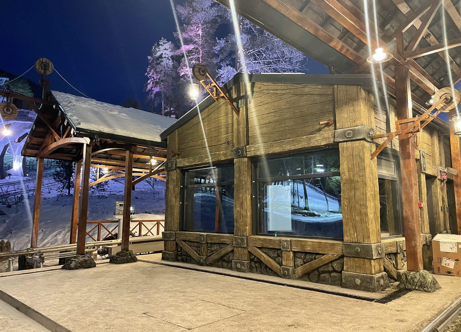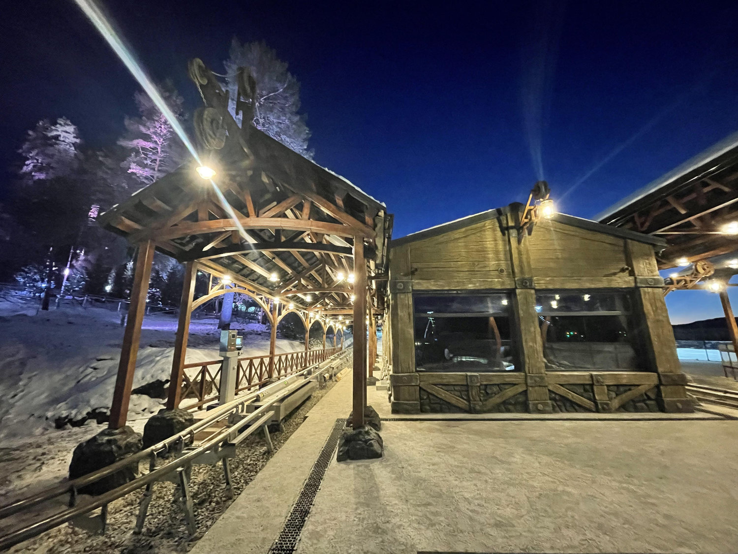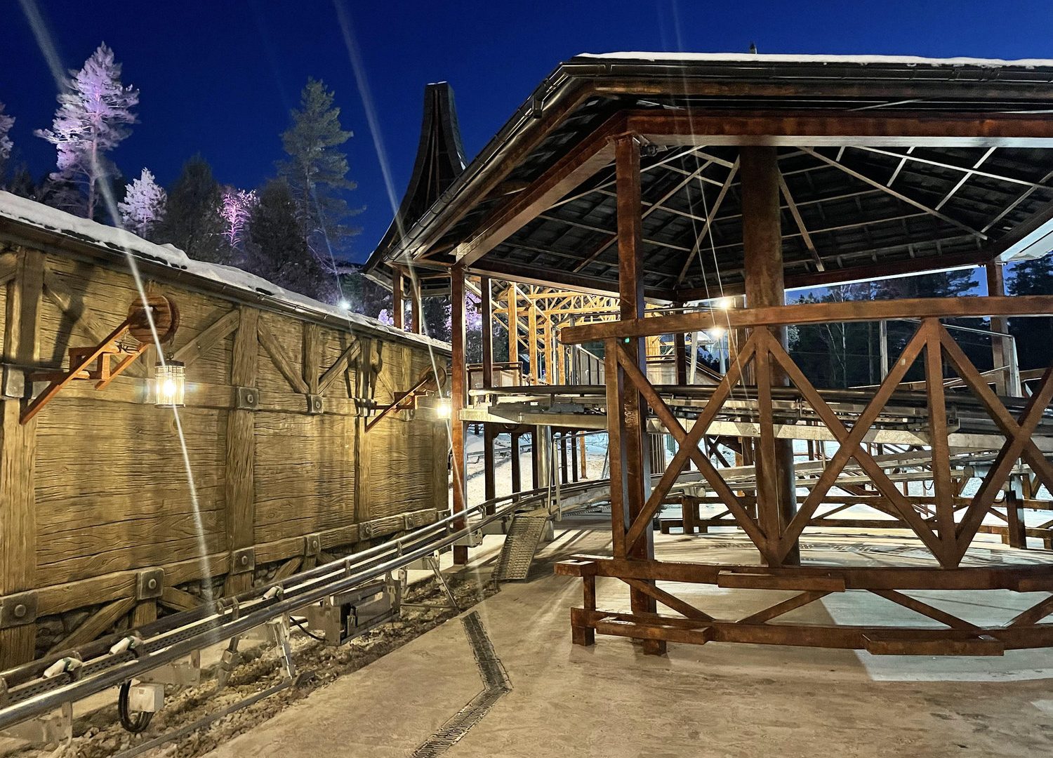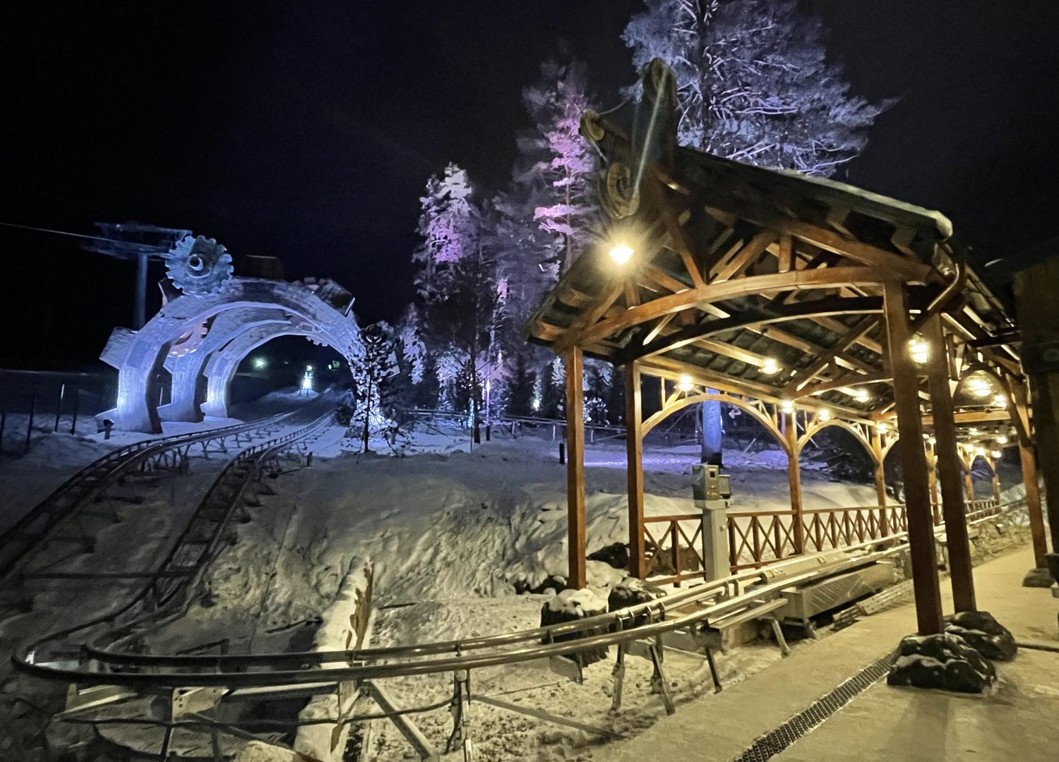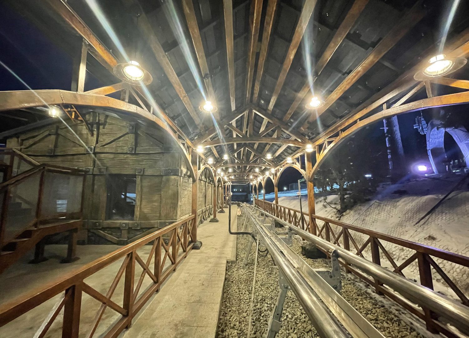 Как и любой рельсовый аттракцион, Родельбан требует организации продуманной инфраструктуры для безопасной посадки и высадки пассажиров. Такие зоны по своей сути напоминают компактный вокзал, включающий билетные кассы, зону накопителя перед посадкой, перрон отправления, перрон прибытия, а также разворотный круг для подвижного состава. При проектировании необходимо учитывать распределение потоков посетителей, требования безопасности, эксплуатационные особенности и нормативные ограничения.