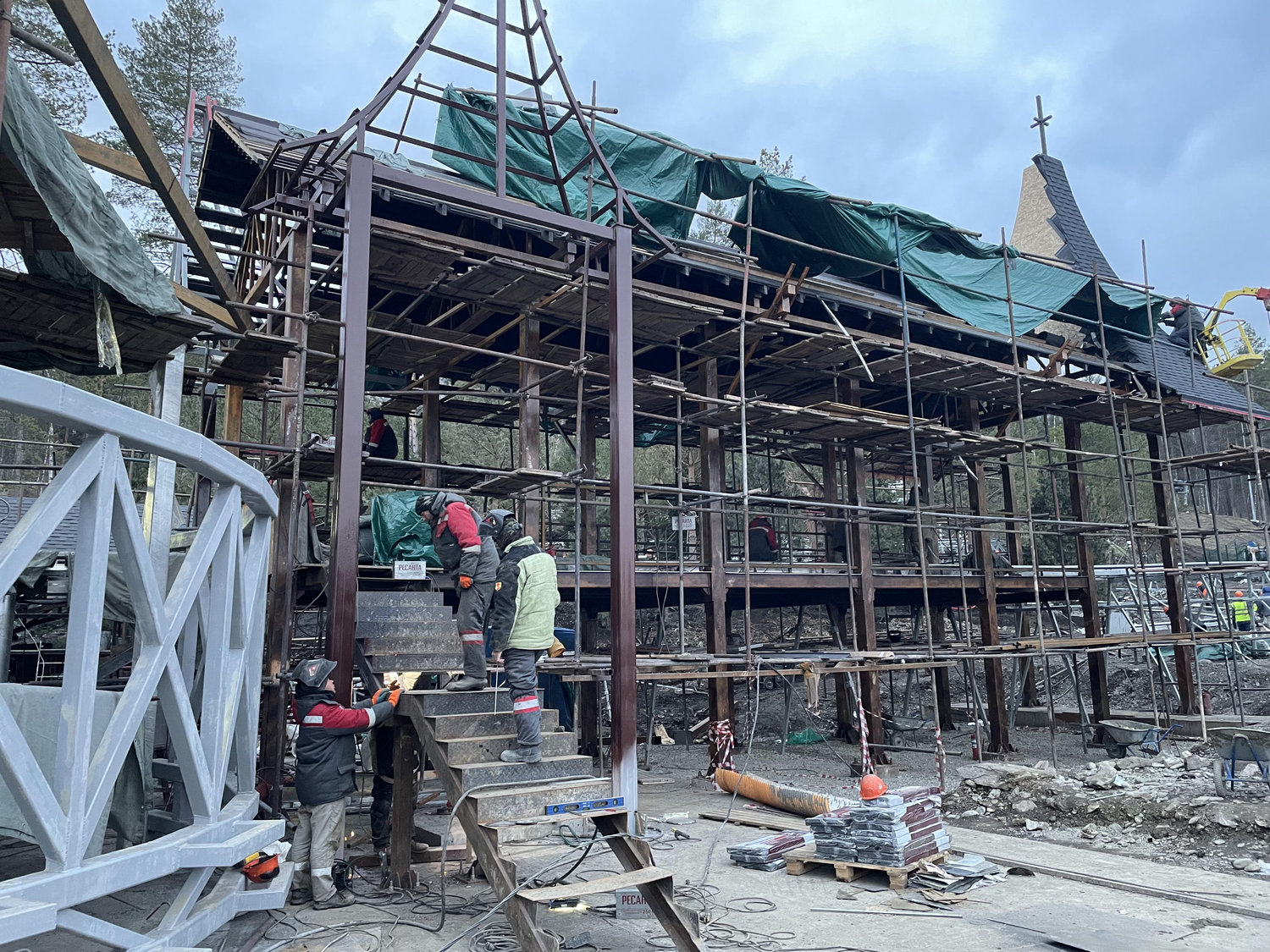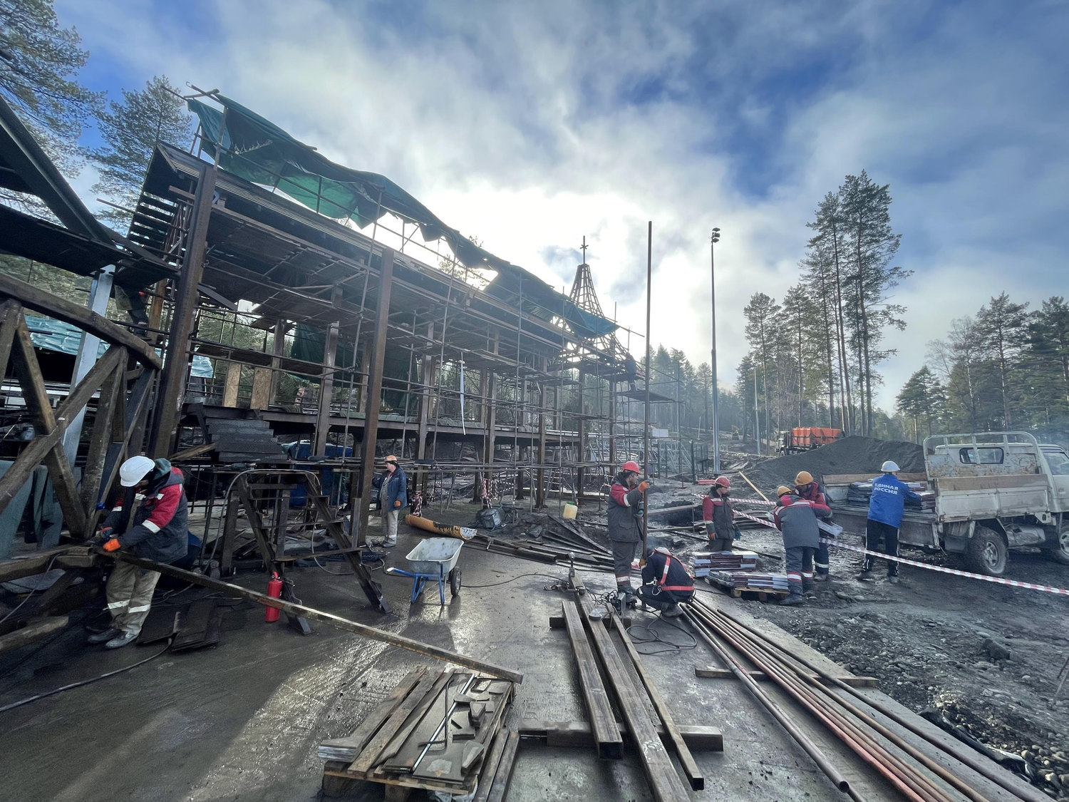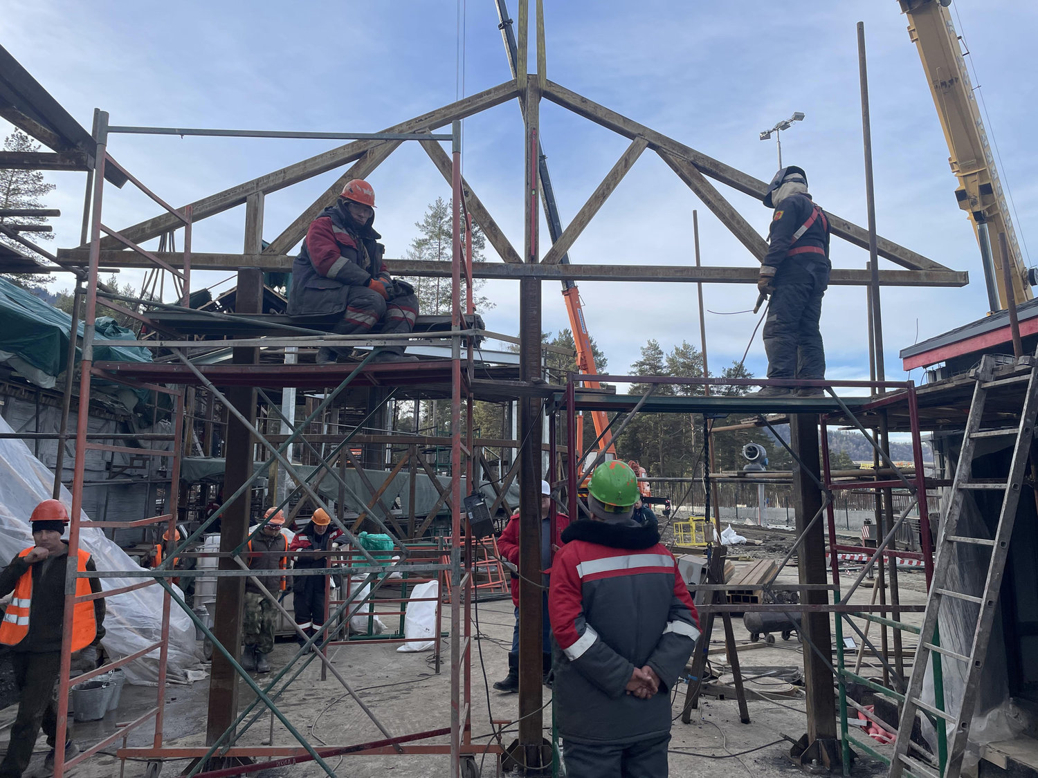 Дополнительные сложности создавало зимнее строительство. Работы проводились в условиях низких температур и короткого светового дня. Для обеспечения технологических процессов формировались временные тепловые контуры с круглосуточной подачей тепла, а монтаж на открытых участках осуществлялся при интенсивном искусственном освещении.