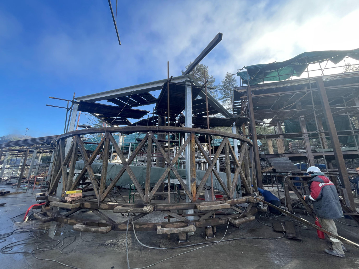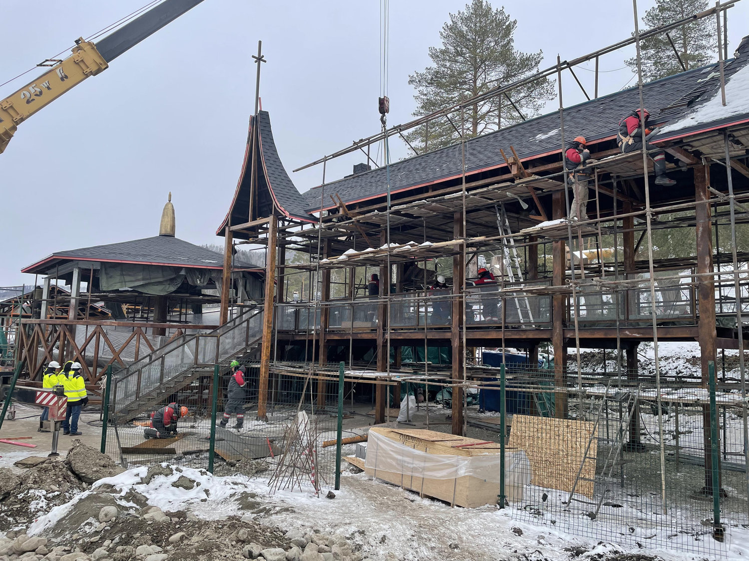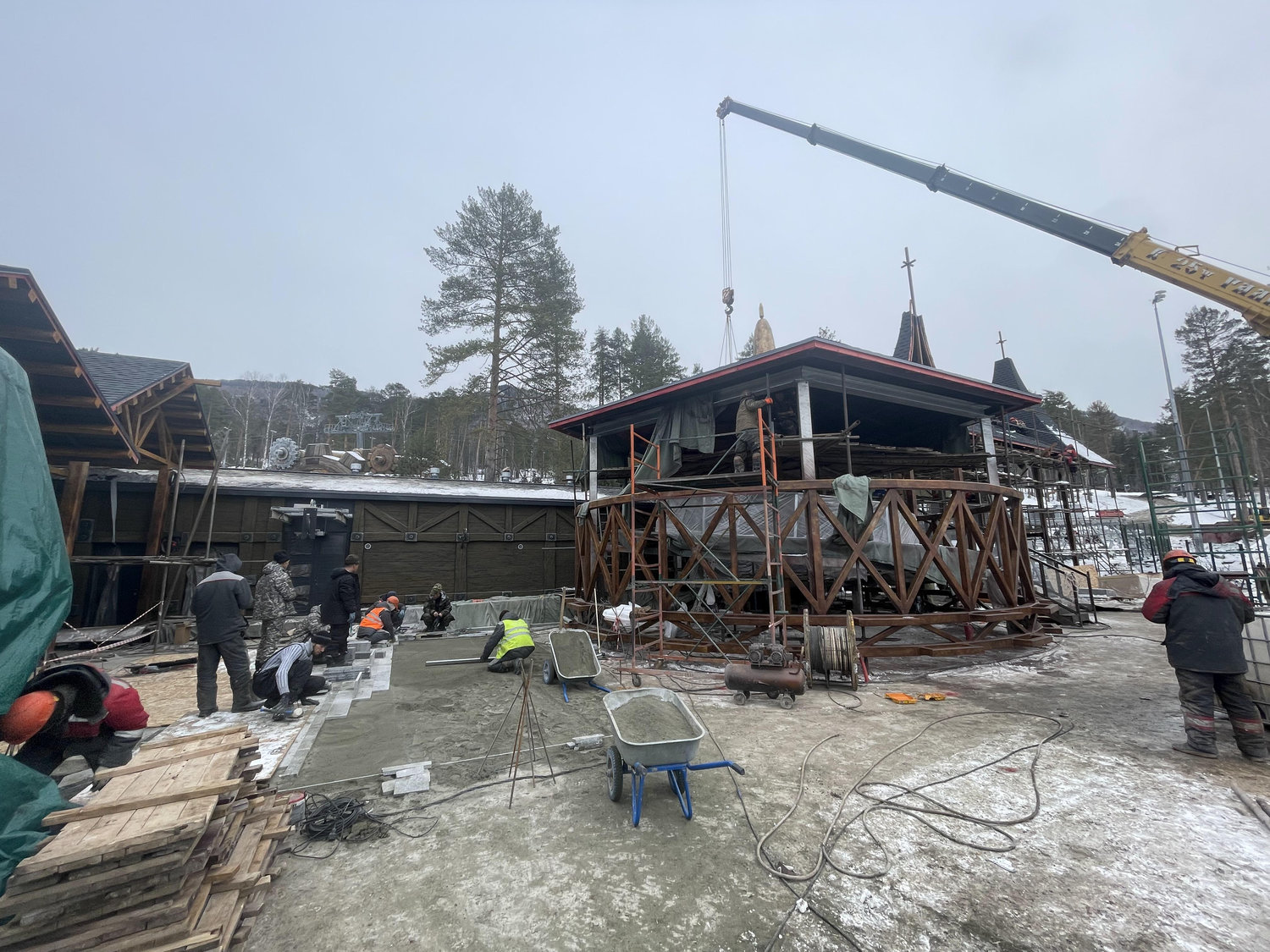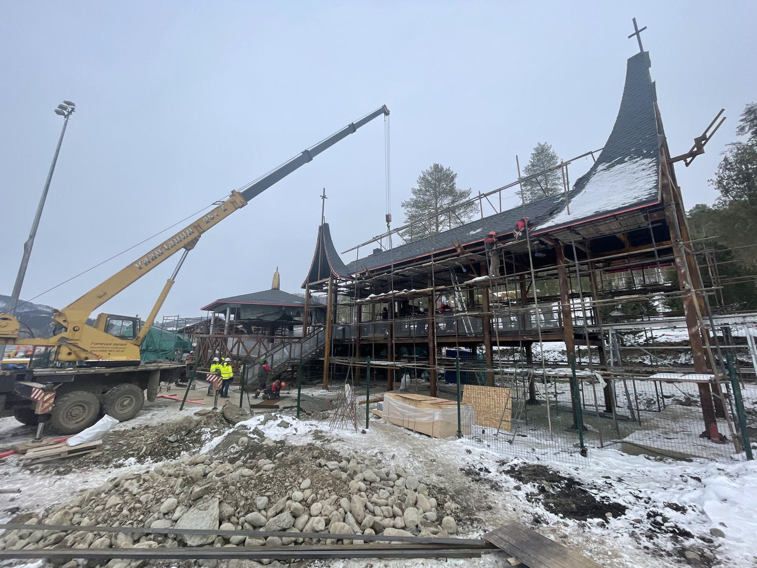 Дополнительные сложности создавало зимнее строительство. Работы проводились в условиях низких температур и короткого светового дня. Для обеспечения технологических процессов формировались временные тепловые контуры с круглосуточной подачей тепла, а монтаж на открытых участках осуществлялся при интенсивном искусственном освещении.