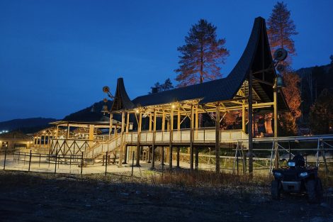 В случае Манжерока задача усложнялась тем, что Родельбан стал частью первой очереди строительства тематического парка развлечений. Это означало, что архитектурные решения должны были не только соответствовать функциональным требованиям, но и вписываться в общую художественную концепцию территории. Внешний облик Станции Родельбана и сопутствующих сооружений проектировался с учетом легенды горной местности и фэнтезийной истории, в рамках которого развивается парк.