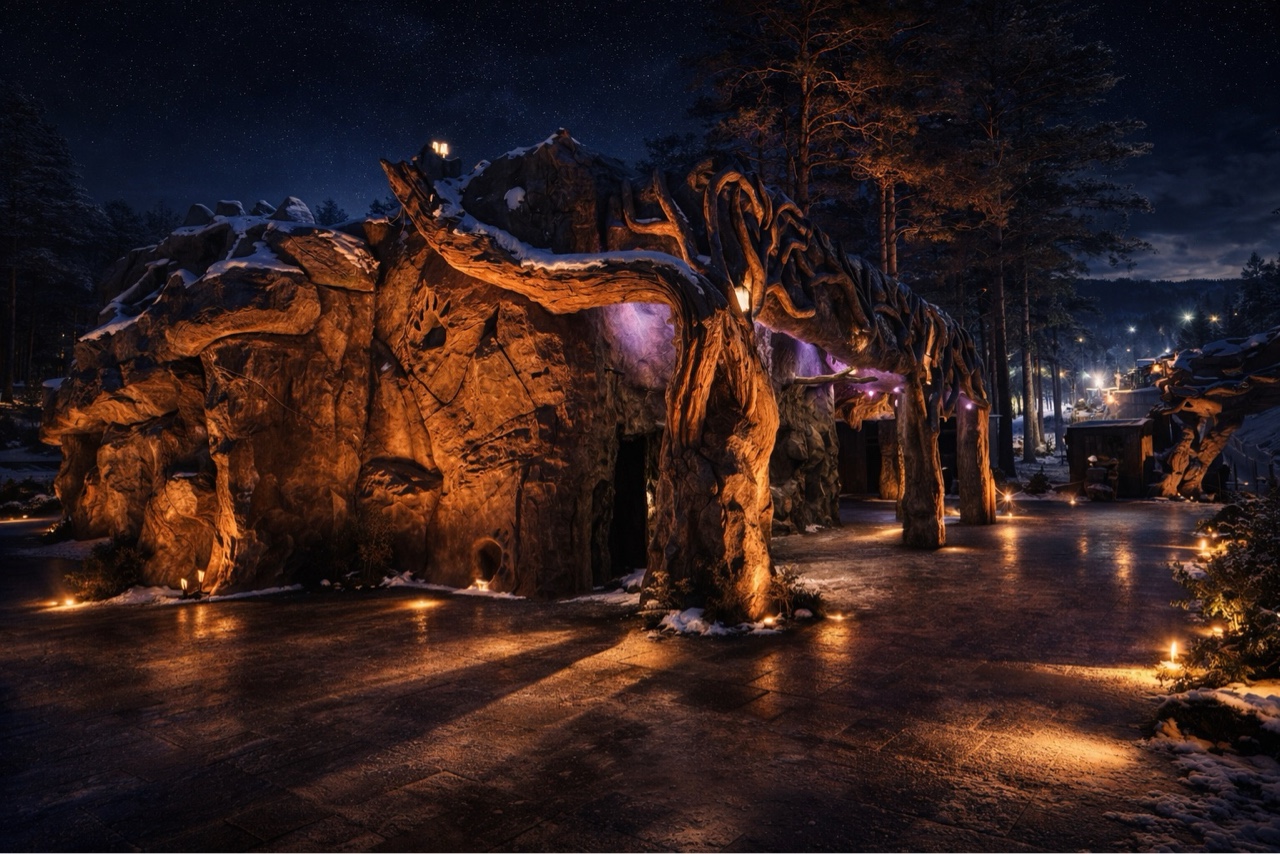 Таким образом, станция тюбинга в Манжероке выходит далеко за рамки своей утилитарной функции, превращаясь в полноценный архитектурный пролог к пространству «Дримвуда». Здесь инфраструктура становится частью повествования, а первое впечатление — осмысленным и управляемым элементом сценария, формирующим основу дальнейшего взаимодействия посетителя с парком и его мифологией.