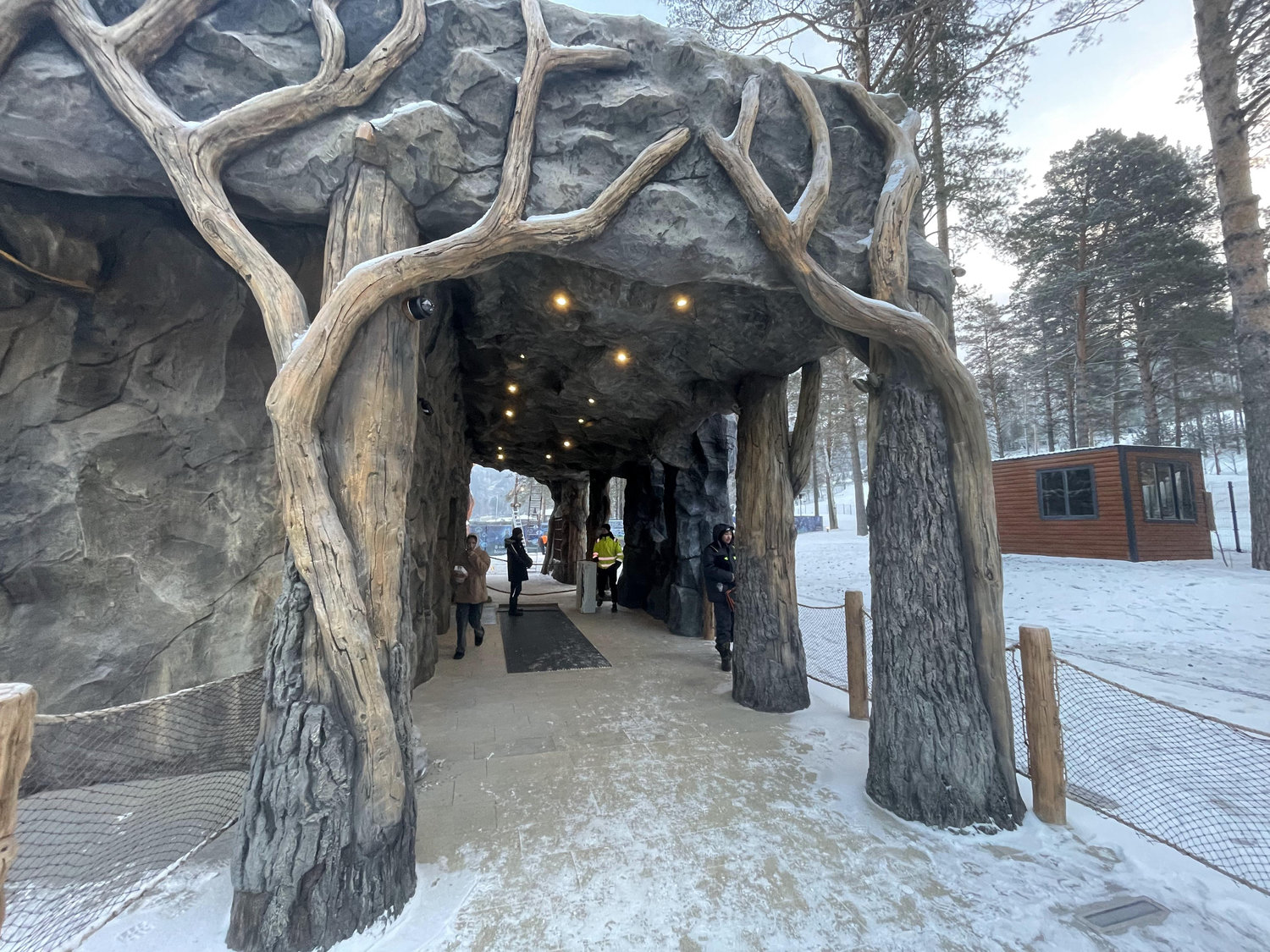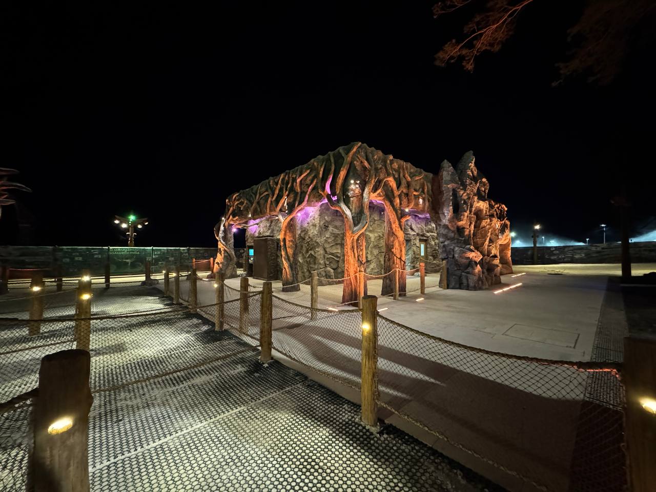 Концептуалисты и архитекторы выстроили систему визуальных рифм между фасадами станции и арками, выполненными в образах тех же духов-хранителей. Эти арки встречают посетителей на старте и сопровождают их в пространстве аттракциона, формируя непрерывную сценарную линию и усиливая эффект погружения в тематическую среду.