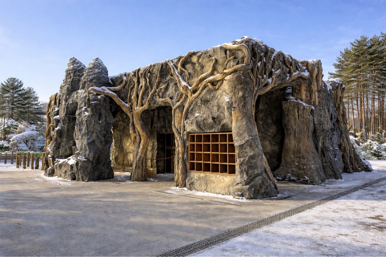 В традиционной практике подобные здания проектируются как утилитарные объекты с чётко регламентированной структурой. Как правило, в их составе присутствуют кассовая зона, блок выдачи снаряжения, организованное пространство ожидания, технические помещения и зоны для обслуживающего персонала. Однако в контексте тематического парка подобная функциональная логика становится лишь базовым слоем, на который наслаивается более сложная художественно-повествовательная система.