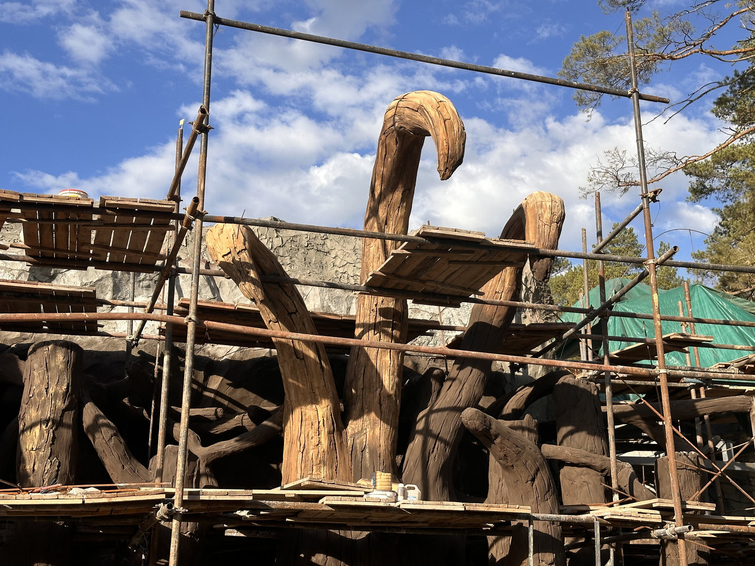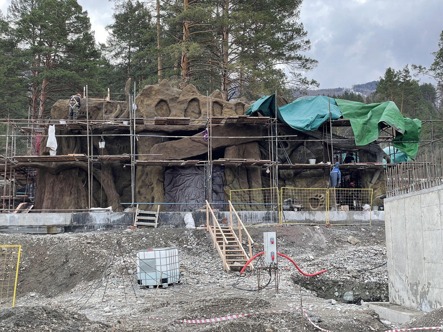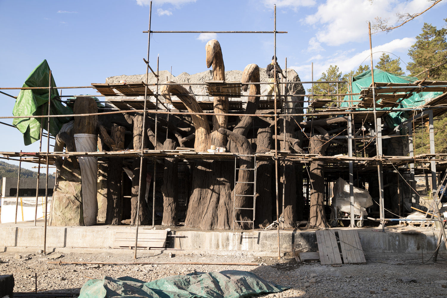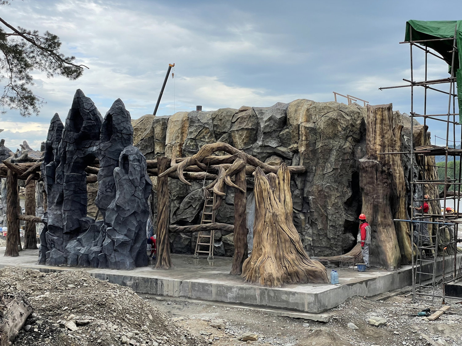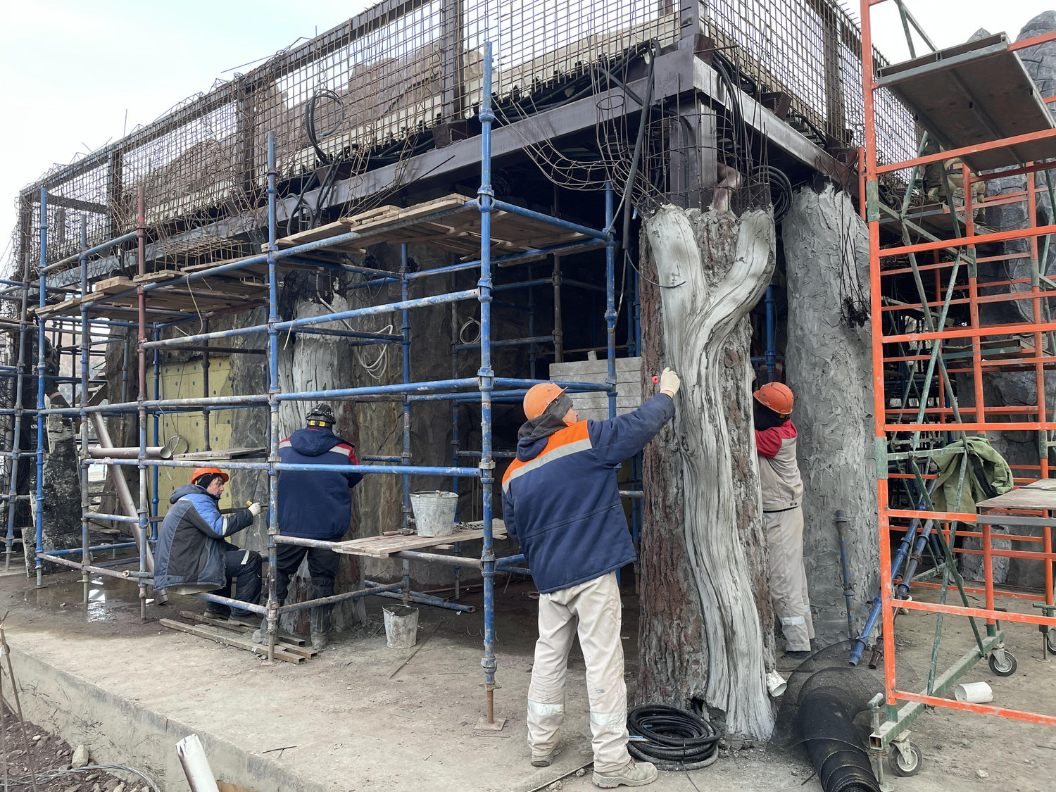Особое внимание было уделено художественной проработке поверхностей. Каменные фактуры создавались с высокой степенью детализации: художники стремились передать текстурные характеристики шерсти, оперения и других биологических особенностей животных через язык архитектуры. Это решение позволяет воспринимать здание не только визуально, но и тактильно, усиливая эффект присутствия и погружения.