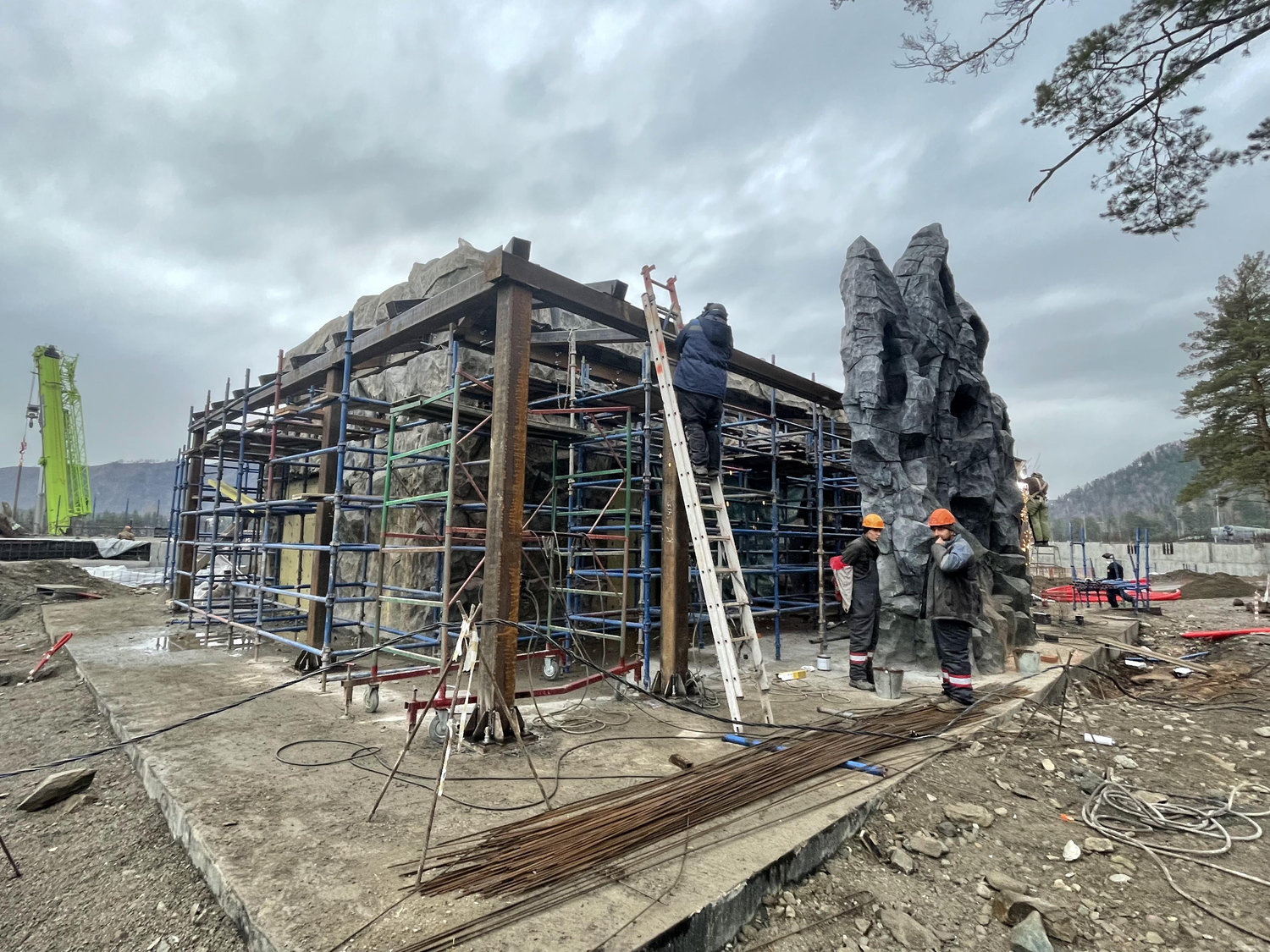 Реализация объекта потребовала комплексного инженерного подхода и разработки детальной конструкторской документации. Проект учитывал сложные климатические условия региона, включая значительные перепады температур, ветровые нагрузки и повышенную сейсмическую активность. В основе конструкции лежит металлический каркас усиленного сортамента, дополненный железобетонными колоннами и несущими стенами, обеспечивающими устойчивость и долговечность объекта.