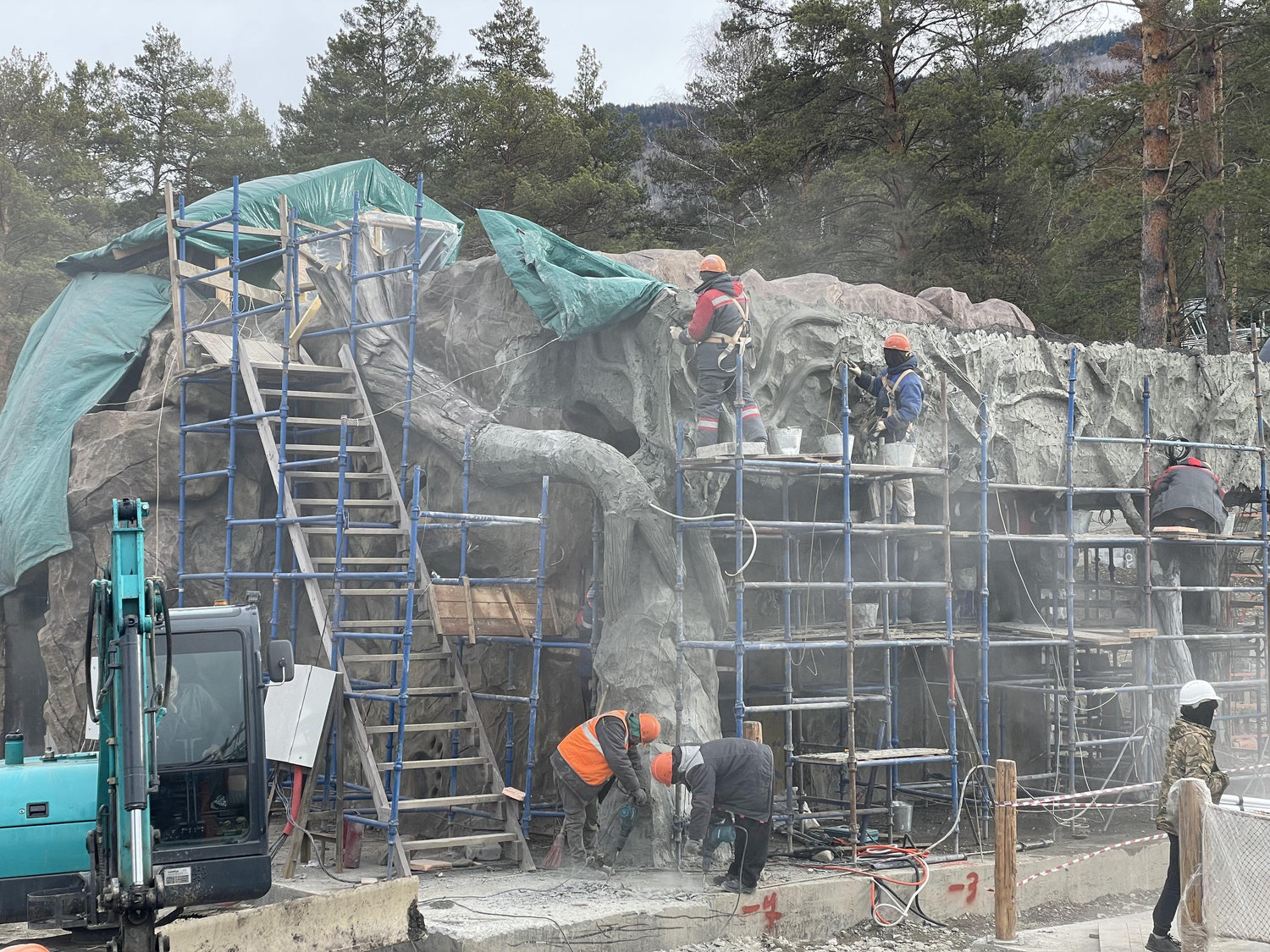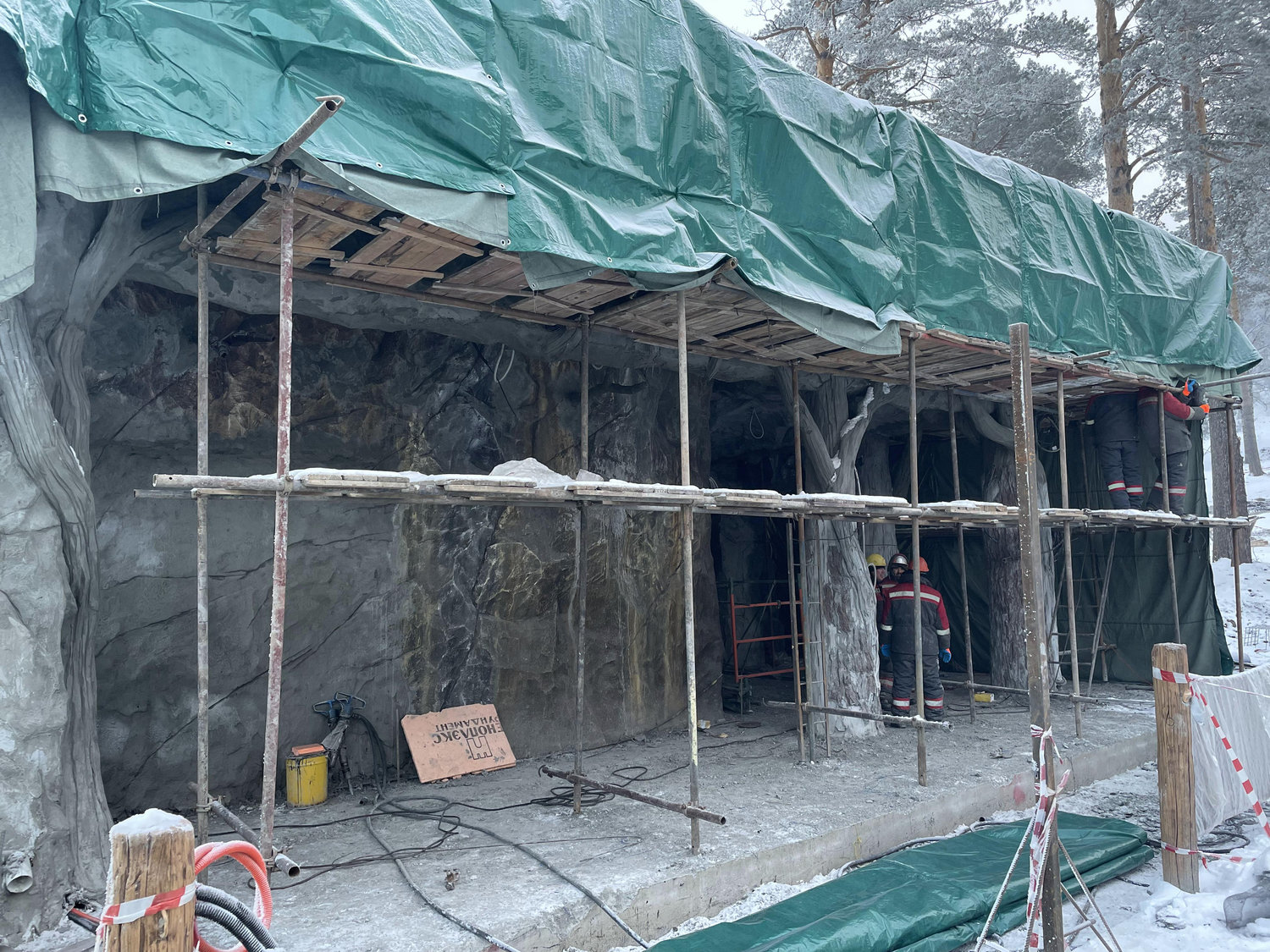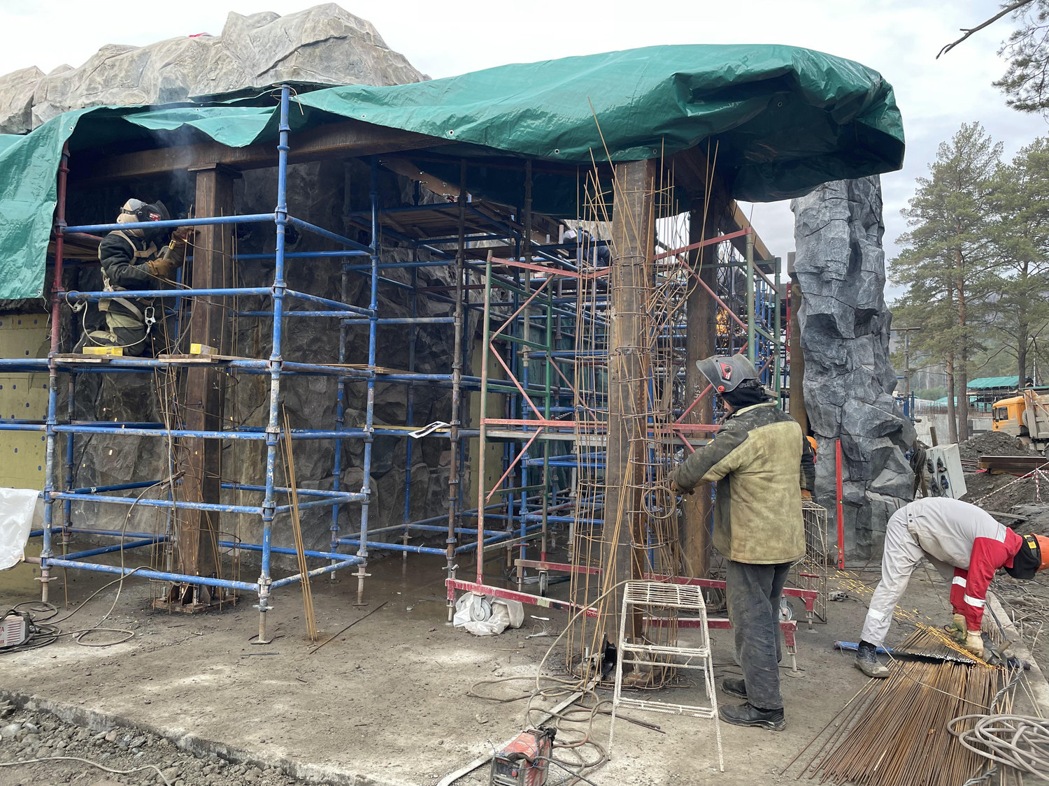 Строительство велось в несколько этапов — в зимний, весенний и летний периоды — вне зависимости от погодных условий. Такая организация процесса отражает специфику региона и подчёркивает сложность реализации проекта в условиях сурового климата, близкого по своим характеристикам к природной среде, существовавшей здесь на протяжении тысячелетий.