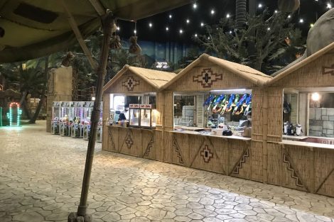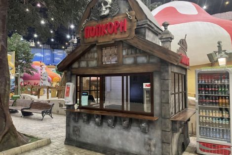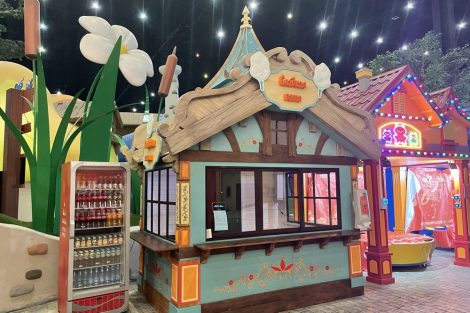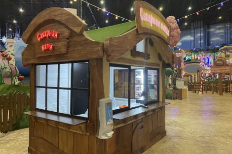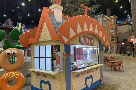 При размещении новых точек питания, самый применимый вариант — выполнить домик с продажей фастфуда в формате сказочной зоны, в которой он находится. Для этого каждый элемент должен быть отработан максимально детально и аутентично. Если выполняется антураж киоска с сахарной ватой, то гигантская вата должна смотреться так, чтобы ее захотелось съесть прямо с крыши. Если в домике продаются пончики, то главный элемент на домике должен выглядеть, как реальный гигантский пончик, выпеченный и покрытый глазурью, выполненный специально для книги рекордов Гиннесса.