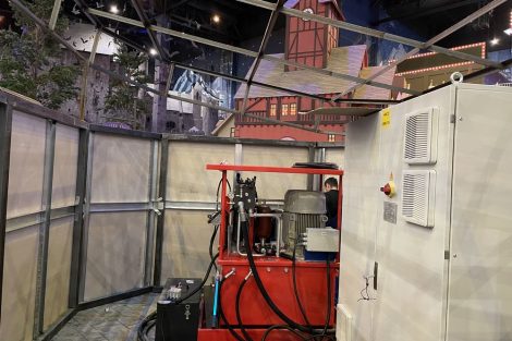 Любой аттракцион состоит не только из видимой посетителям развлекательной конструкции. Но для обеспечения функционирования еще требуется разместить в непосредственной близости некоторое количество вспомогательной аппаратуры и механизмов, которые должны не только быть оборудованы безопасным способом для посетителей, но также иметь либо неприметный вид, либо быть максимально красиво задекорированными.